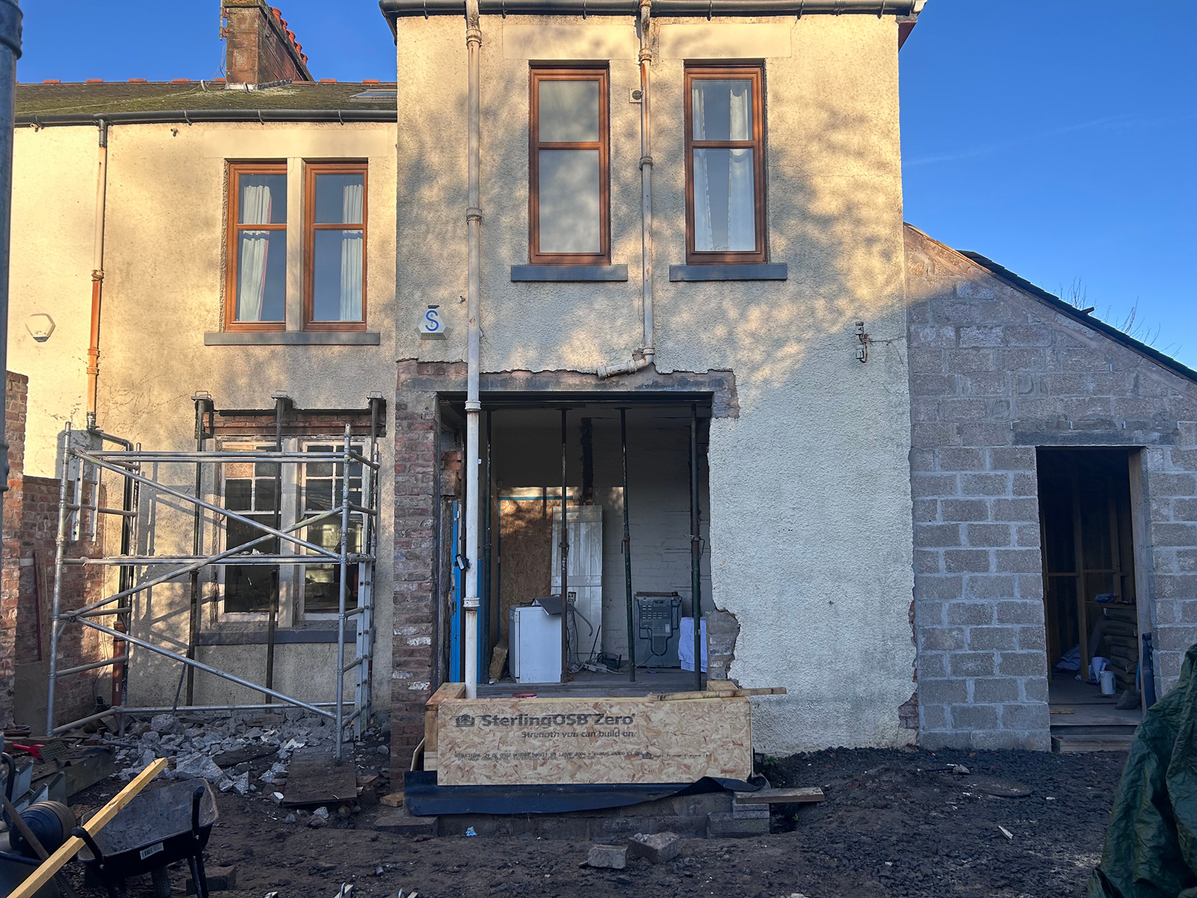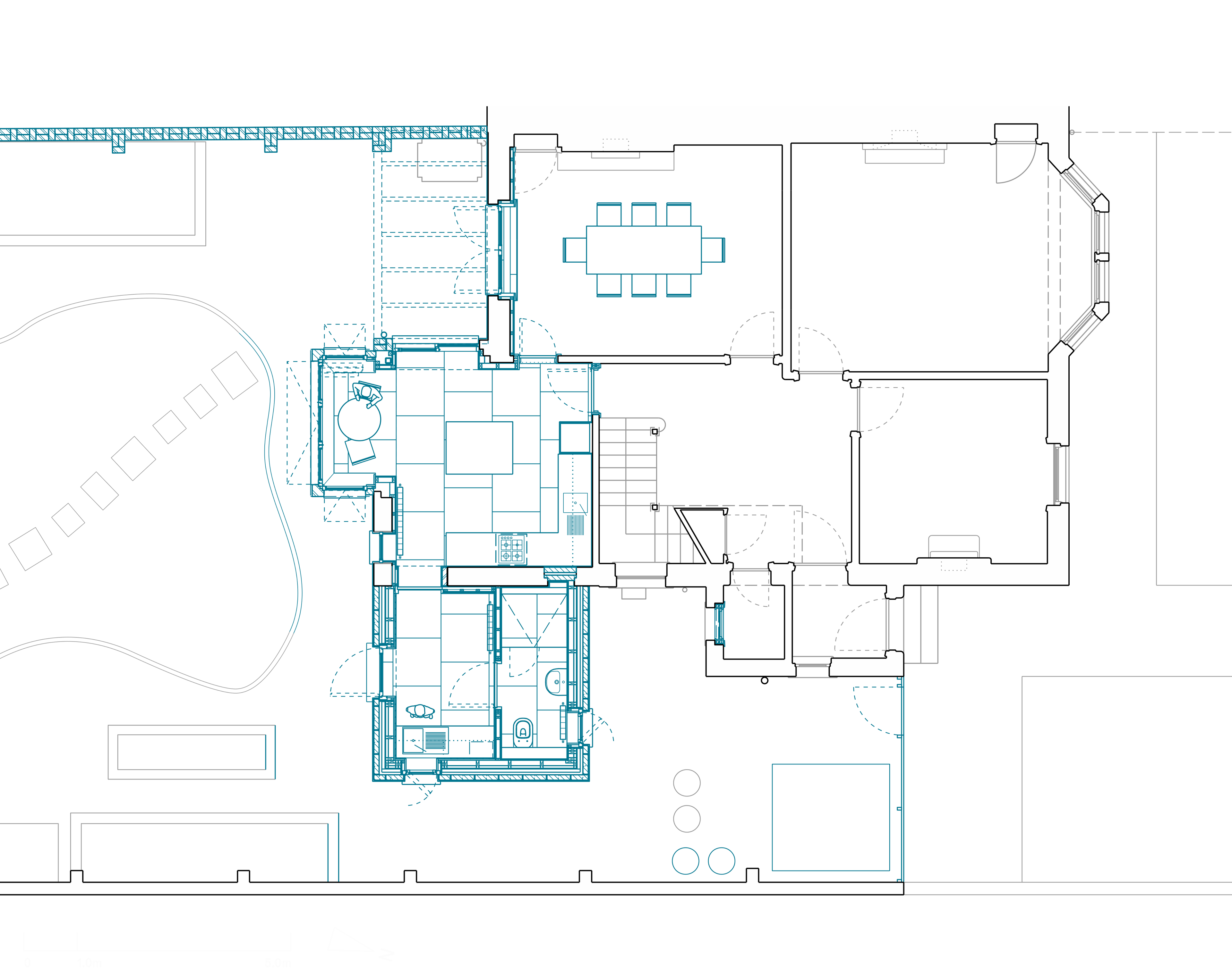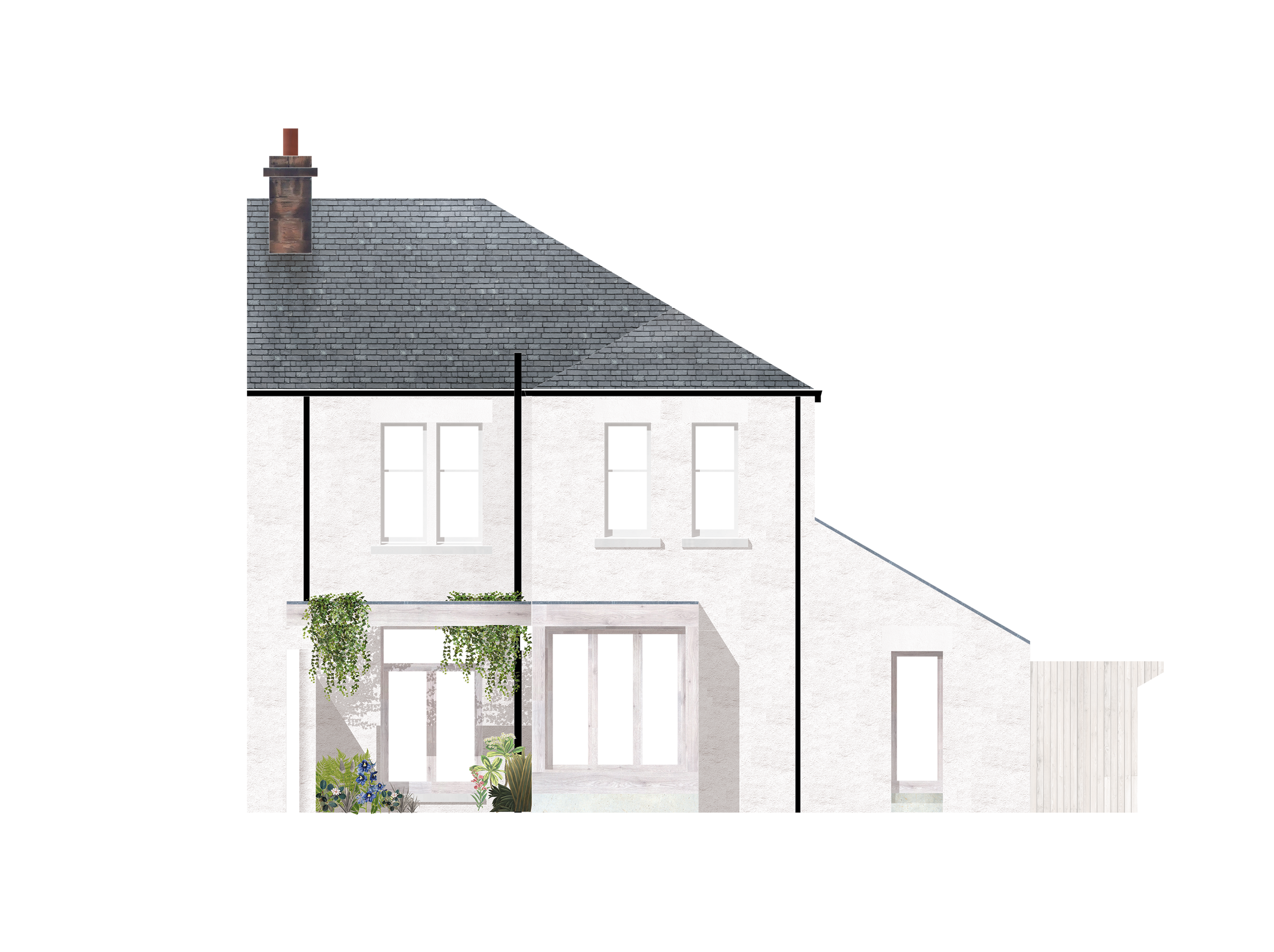 Tactical re-arrangement of a semi-detached house to engage with a generous south-facing garden. Targeted interventions make the most of a small budget. A new side extension provides a utility and shower room, freeing up space for a well-proportioned kitchen with new timber bay window that projects out into the garden. This post-and-beam assembly is carefully detailed with subtle inflections and overhangs to accentuate the solidity of the timber and cast shadows, recalling the sandstone bay window on the front of the house, one of many such elements across the city.