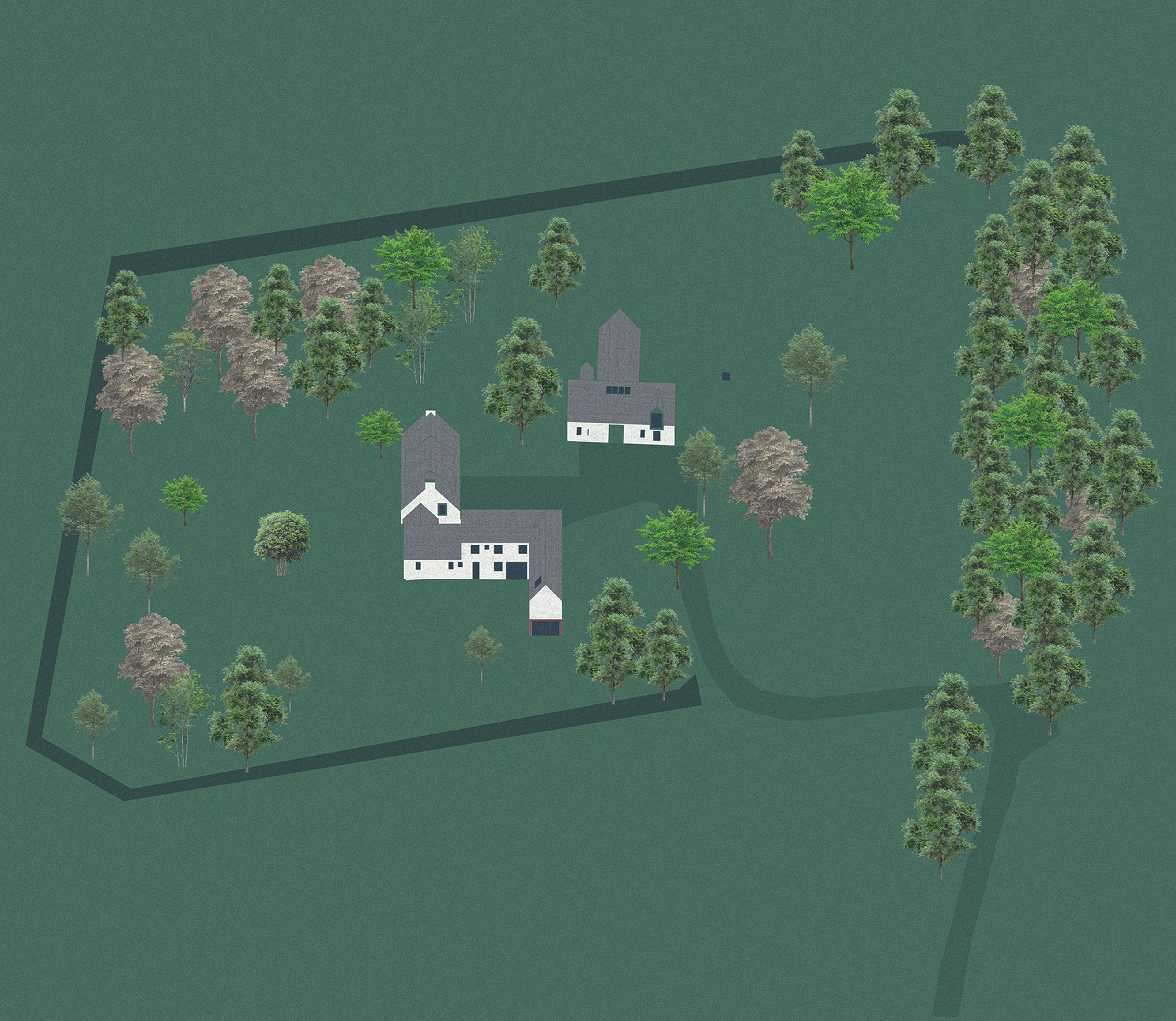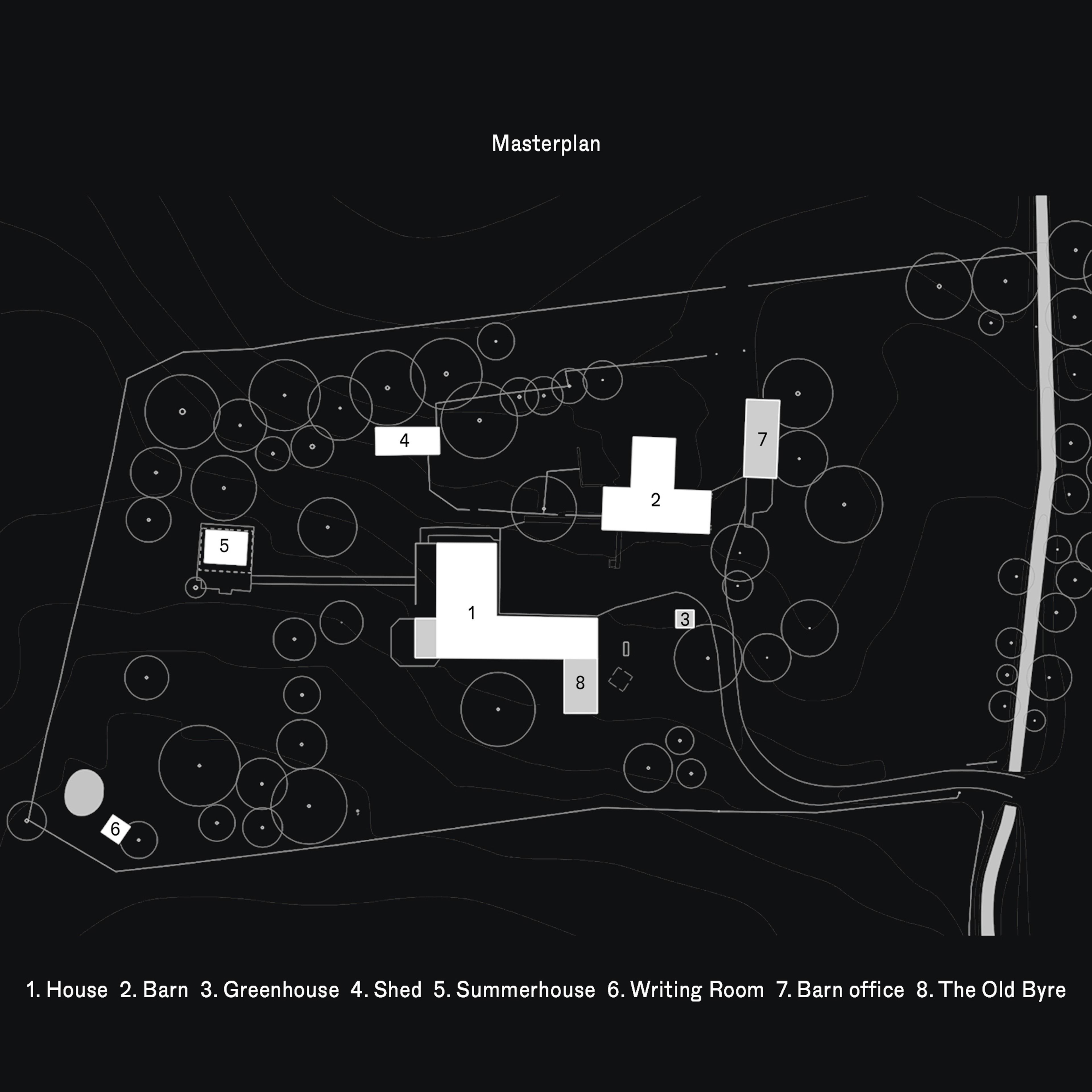 The intention is that this farm will always be a hub for the clients' extended family. It should be a place where multiple generations can reside and care for one another with plenty of space for visiting family and guests. The proposals explored a phased adaptation of the existing dwellings, outbuildings and garden spaces to accommodate the different family members over time.