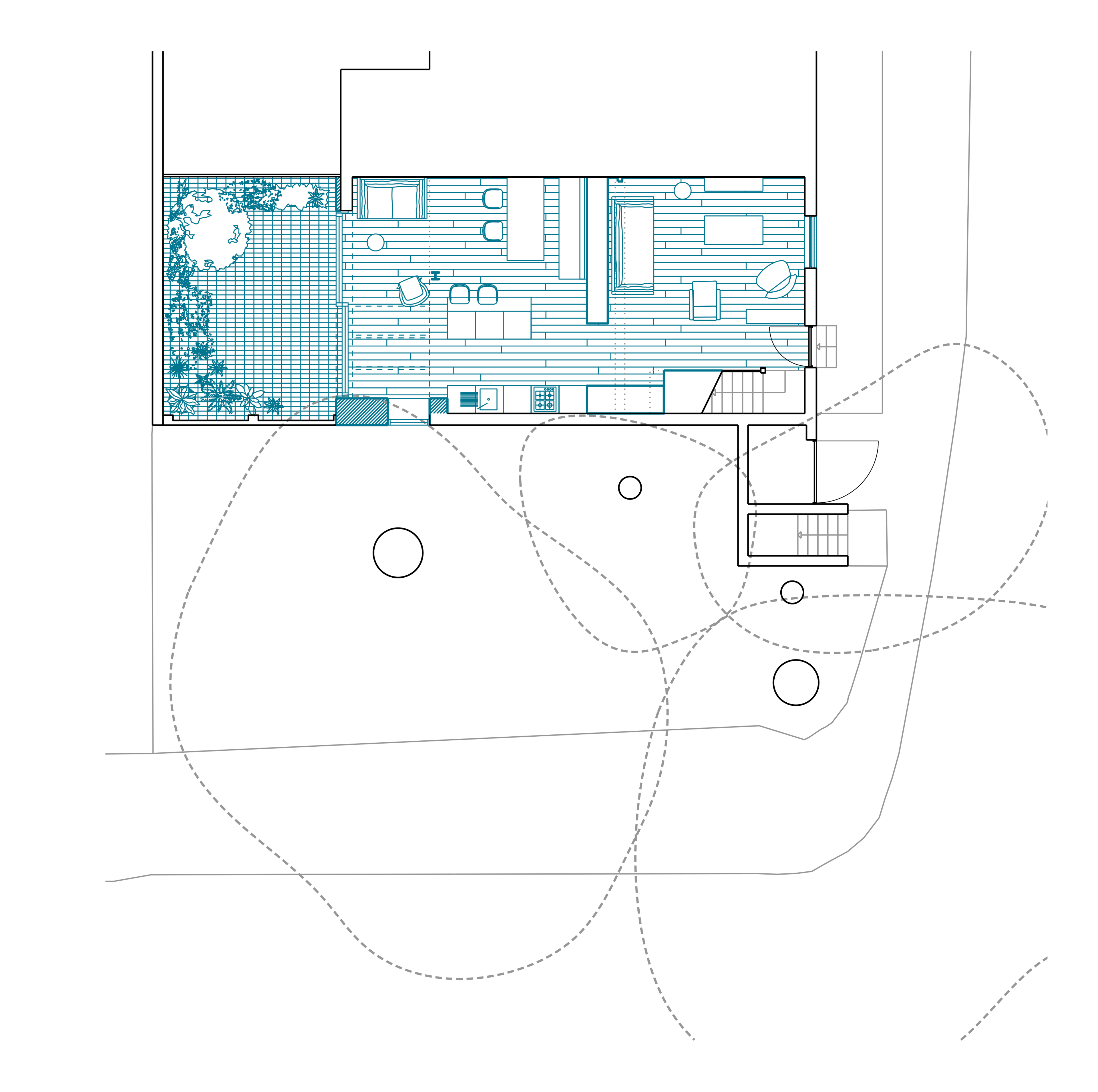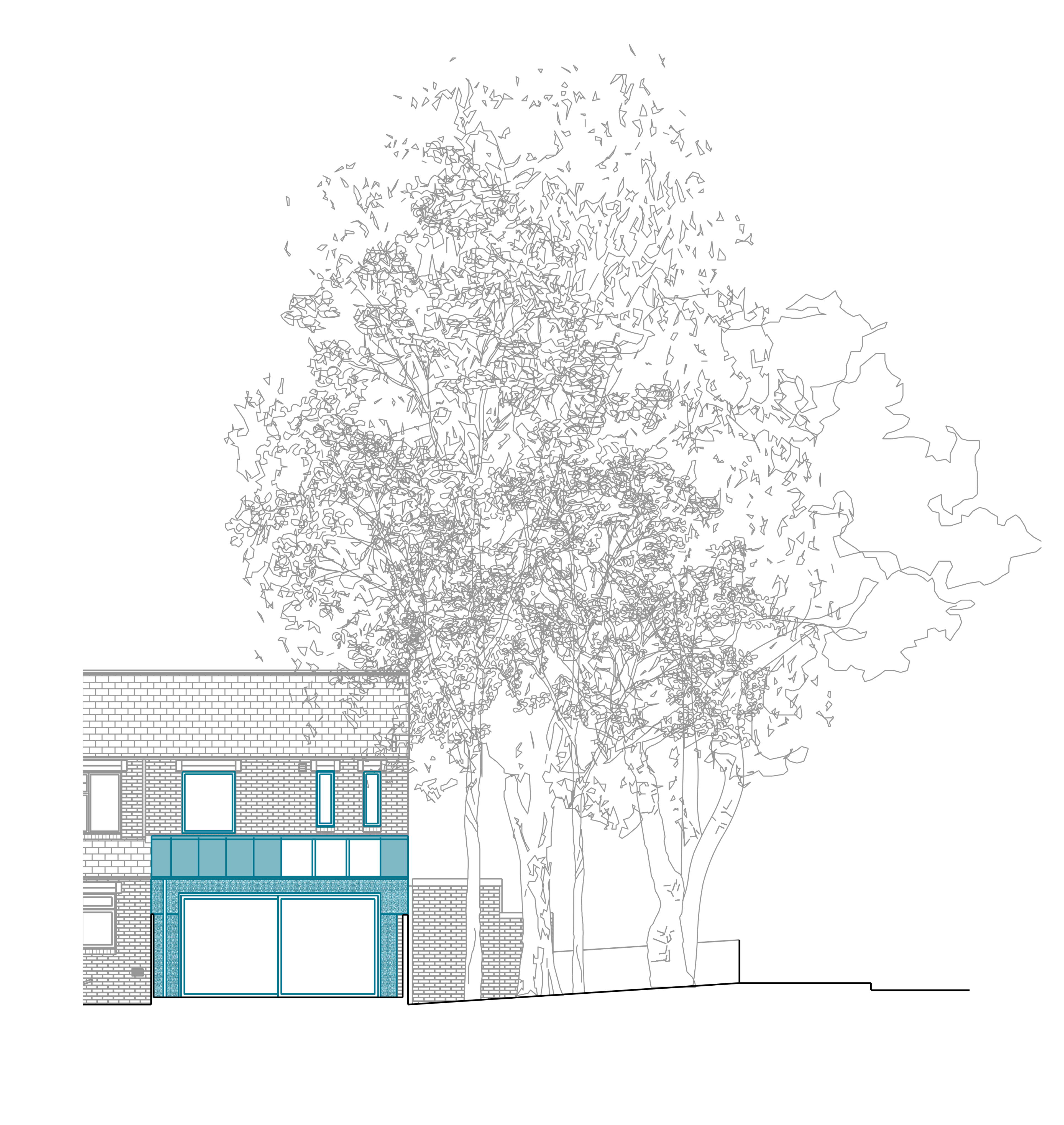 An end-of-terrace 1970s house within a Conservation Area, with three large, beautiful London Plane trees sitting at its gable, provides the setting for a modest, low-energy, self-build project. The elevations are plain and simply composed: brown brick in running bond, concrete roof tiles, and distinctive, precast concrete lintels.