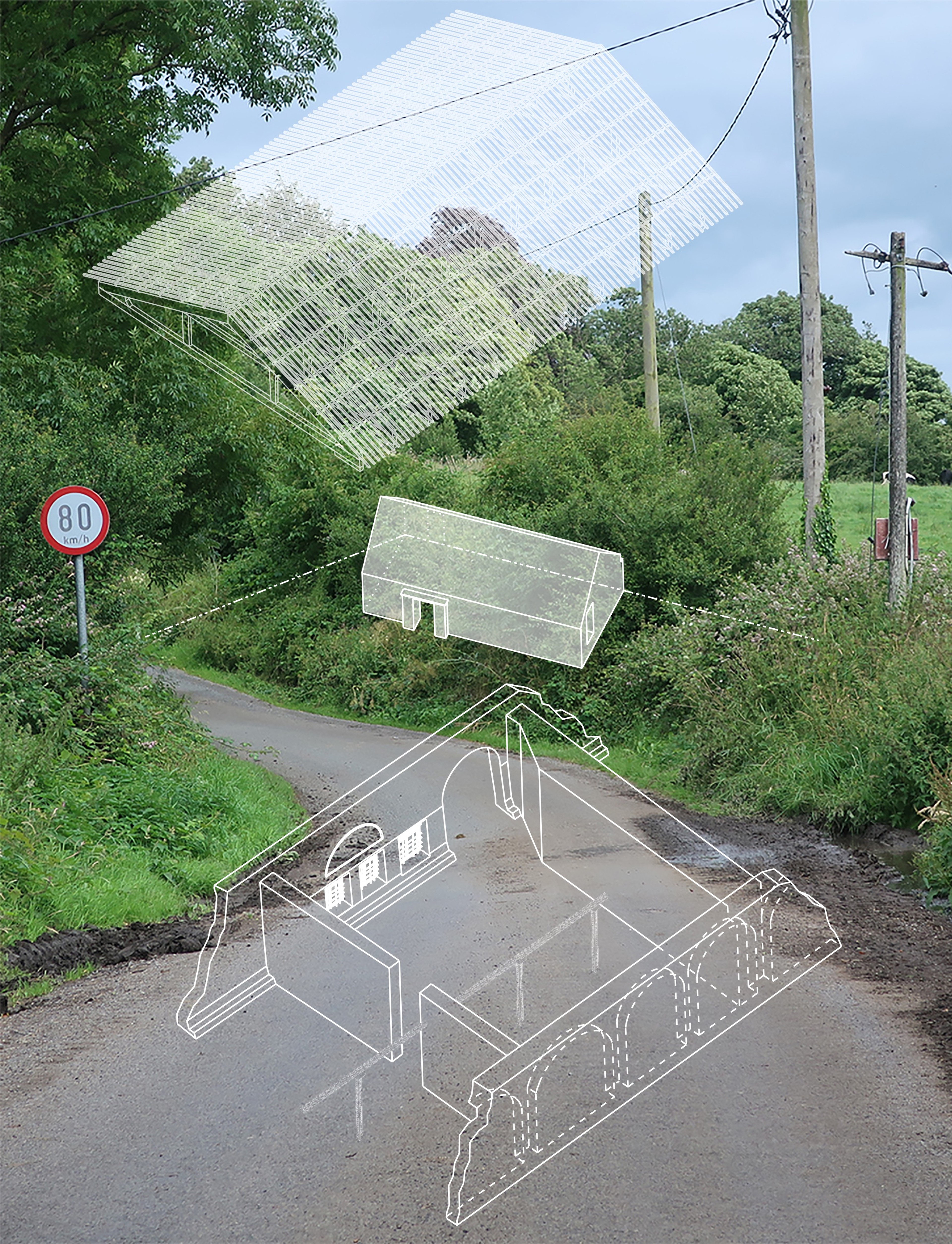 The Spike Hotel is a seemingly unremarkable building like many thousands of others across Ireland. It sits on a minor rural road crumbling back into the landscape. While this is an architectural condition that speaks to many places in Ireland and beyond, the context here is deeply specific. The Spike Hotel is a building divided by an international frontier.