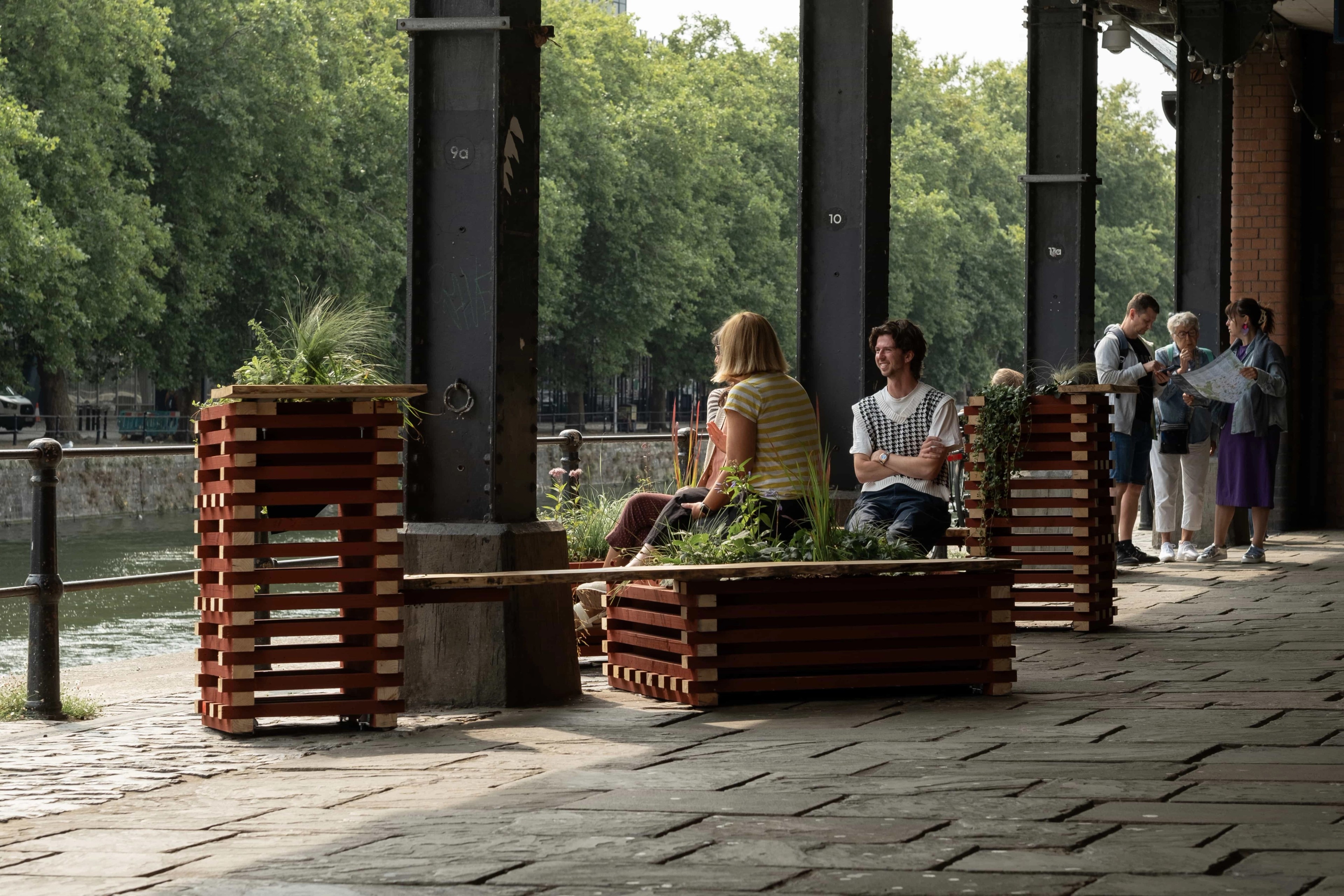 Watershed is a values-led cultural organisation centred around cinema and creative technology, located within a Grade II listed warehouse on Bristol’s harbourside. The new benches are a small, but vibrant intervention designed to enliven the public realm and provide seating immediately outside it’s harbourside bar.