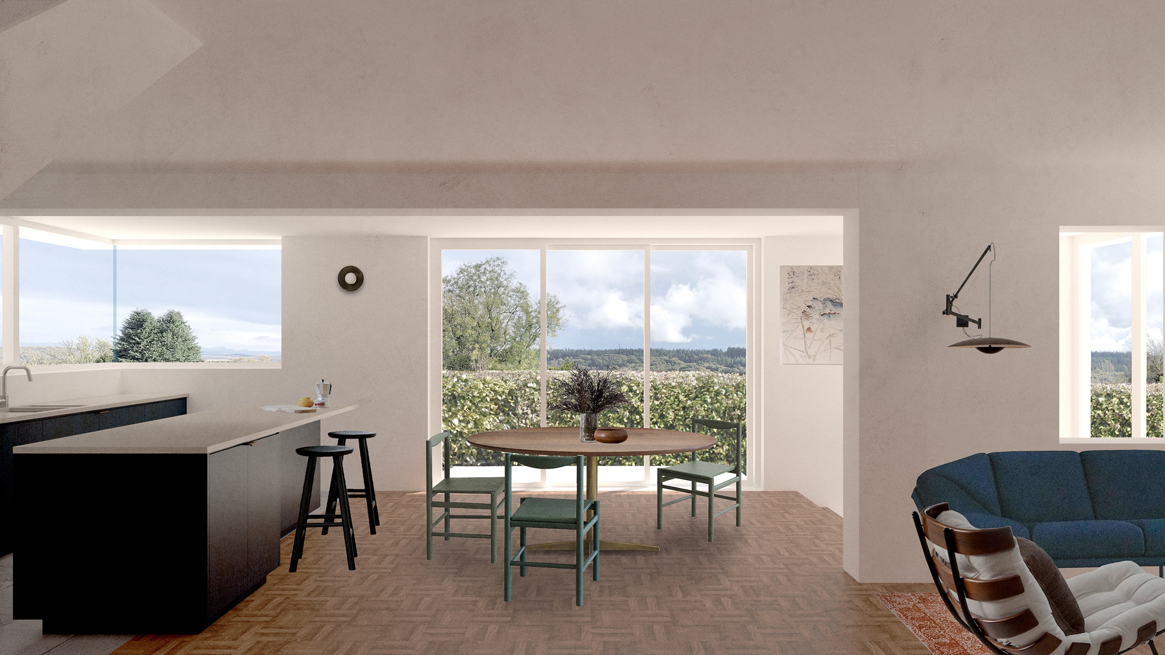 A 1960s bungalow sitting in an elevated position with fine views over the Wiltshire Downs. Over the years, ad-hoc extensions and alterations have contributed to a slightly uncomfortable ground floor plan.