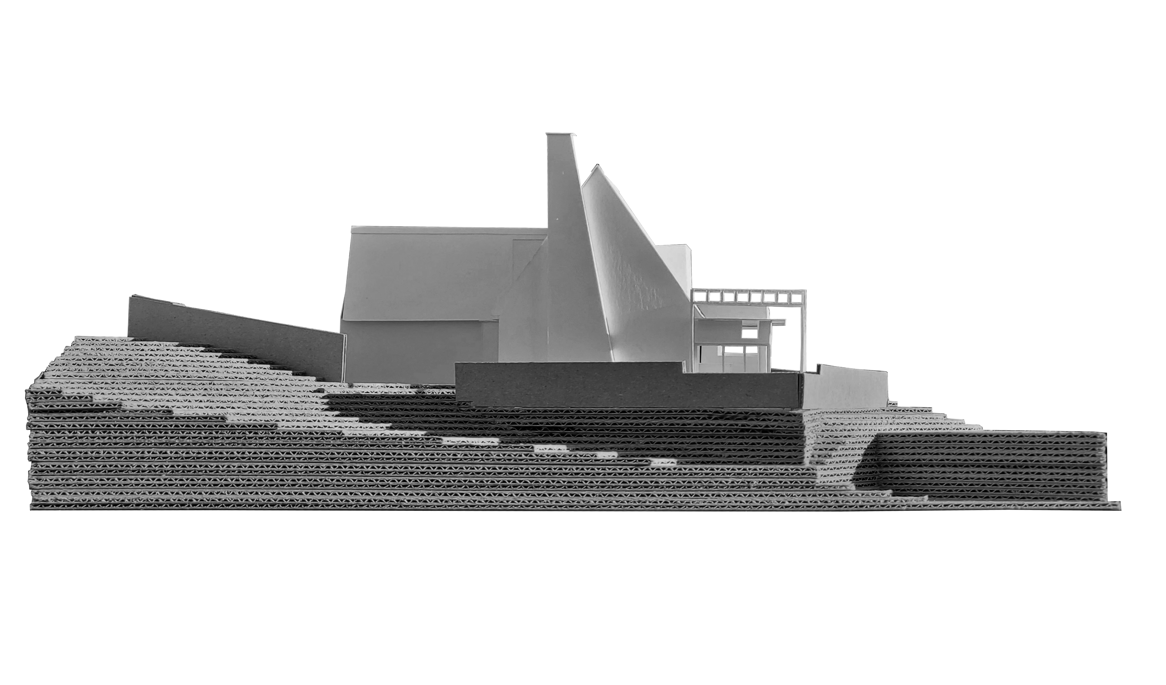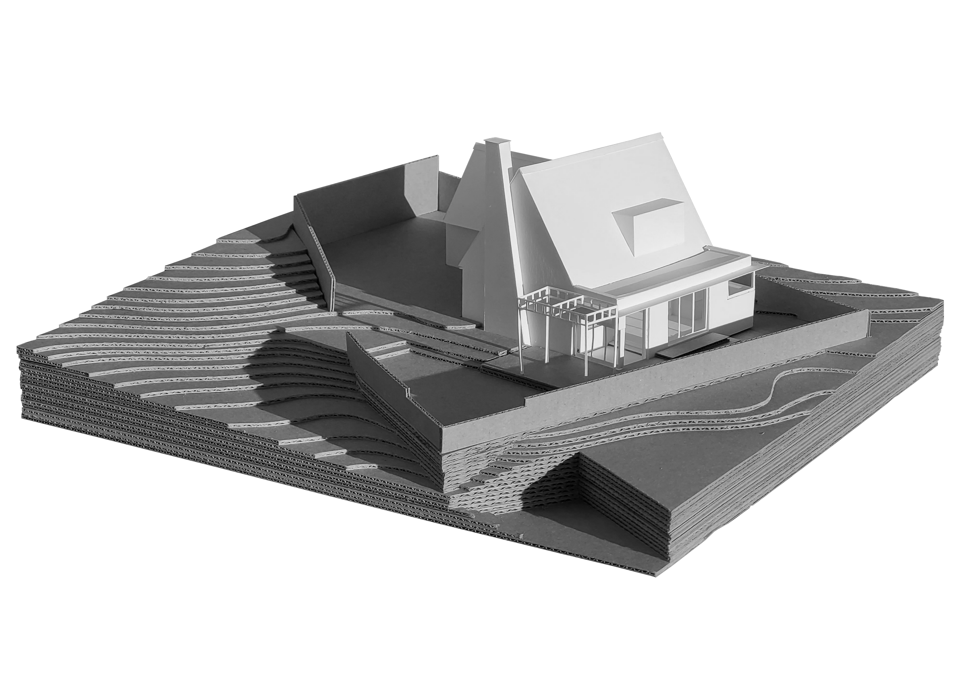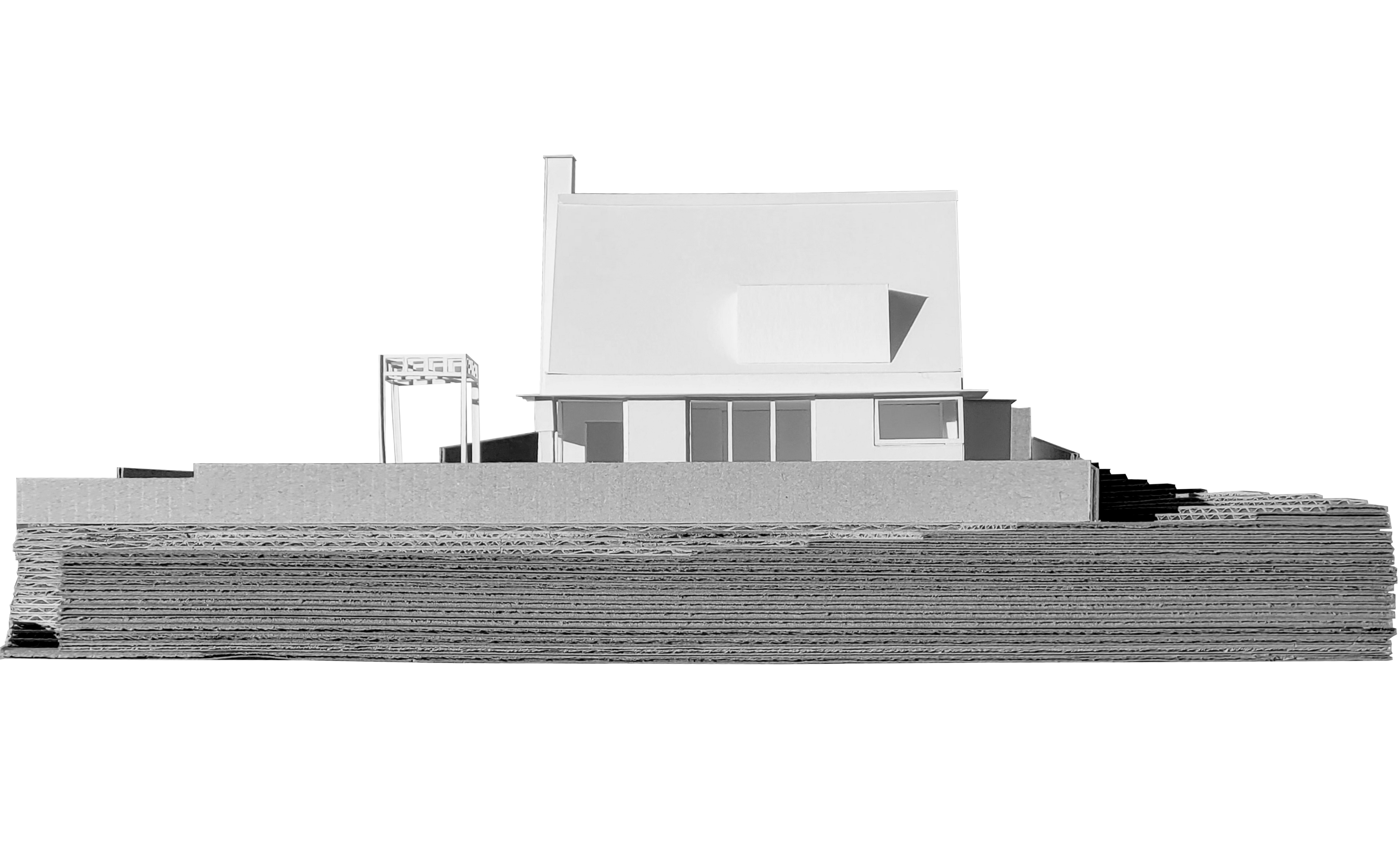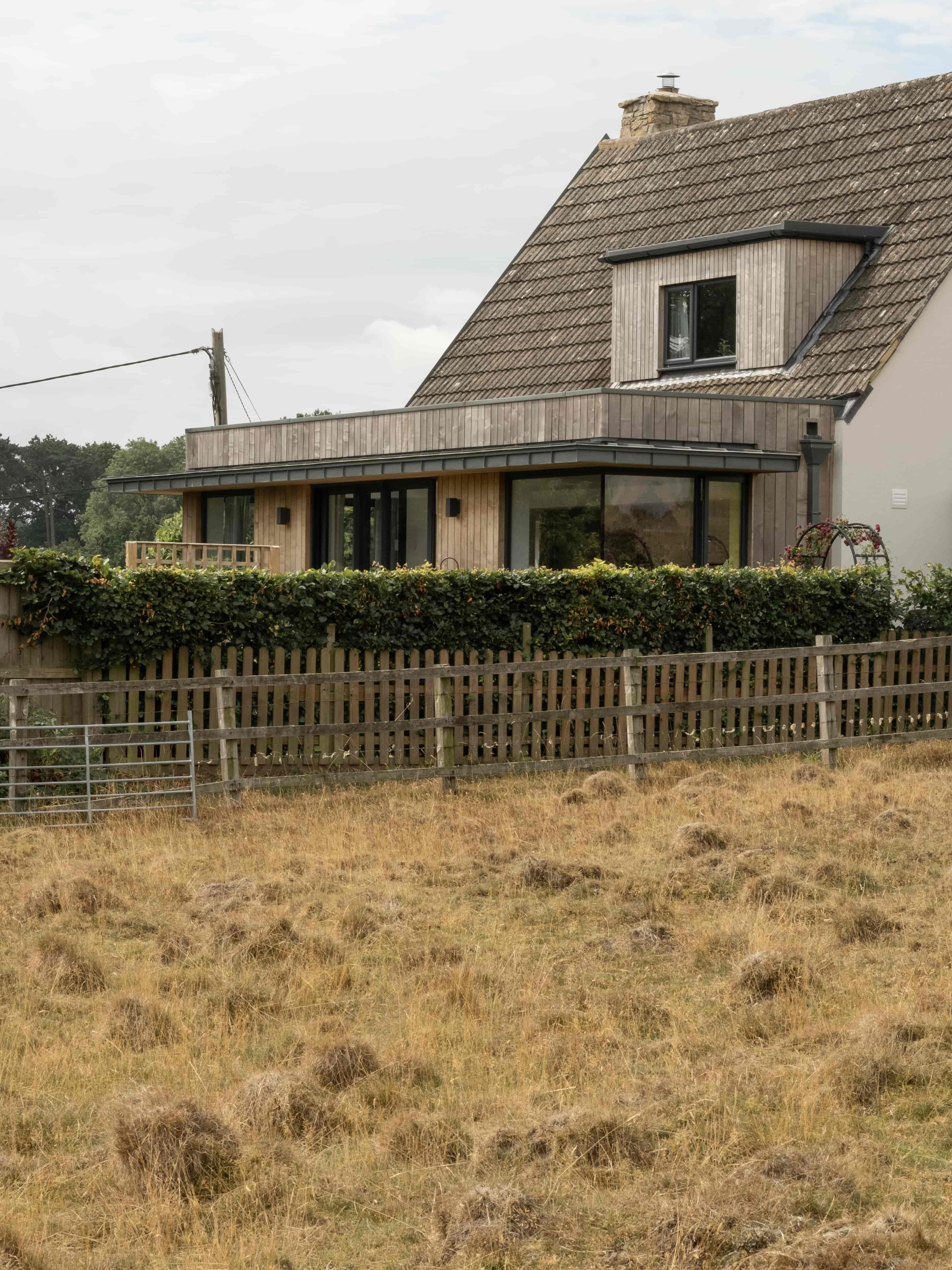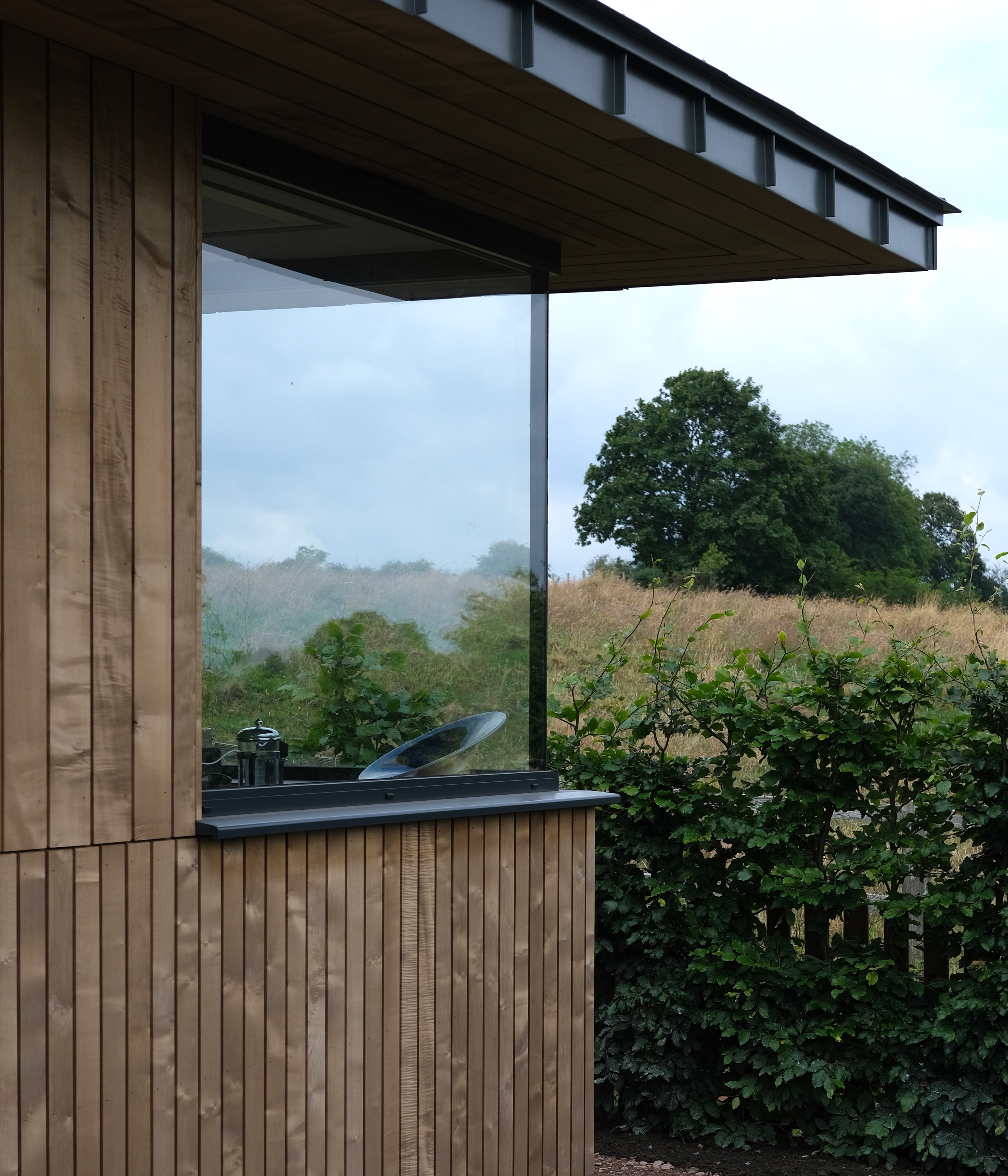A deep canopy adds definition to the roof line and provides additional shading from high summer sun. Locally sourced Poplar, set out in varying board widths, completes the external material palette.