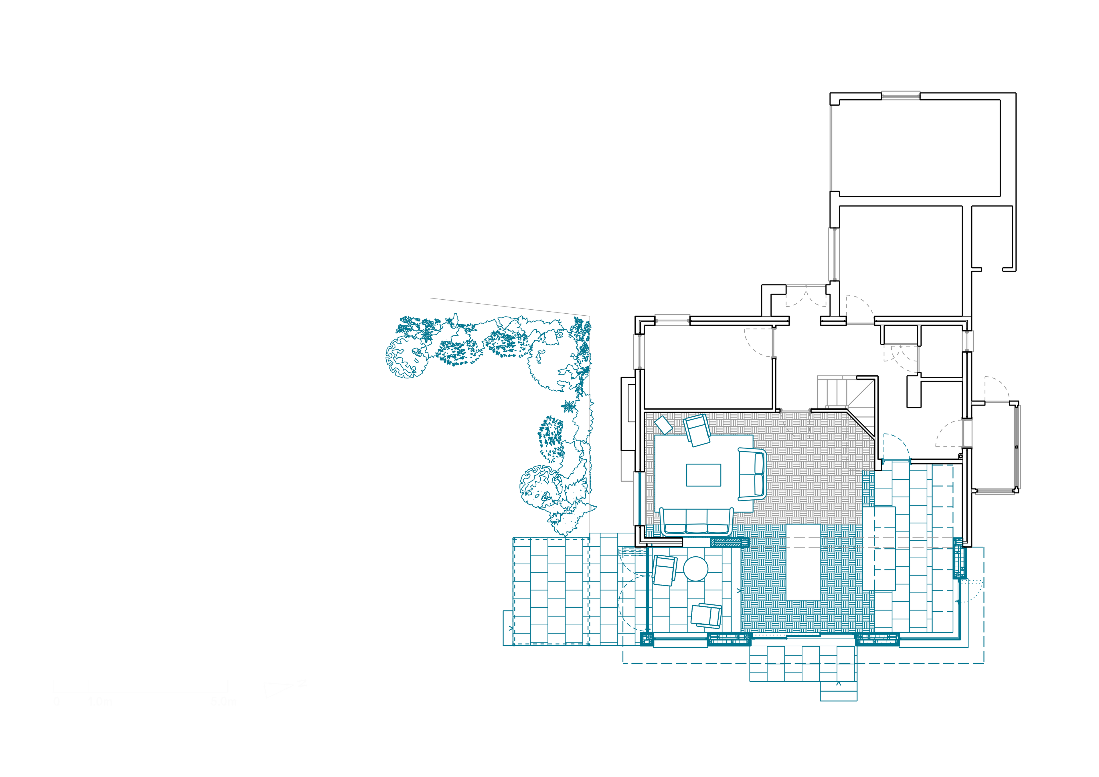 The proposals seek to rationalise this, creating distinct areas within a new open floor plan through subtle introduction of level changes, and select retention of existing walls. The thermal envelope is upgraded to improve efficiency of the new air source heat pump and supporting solar panels.